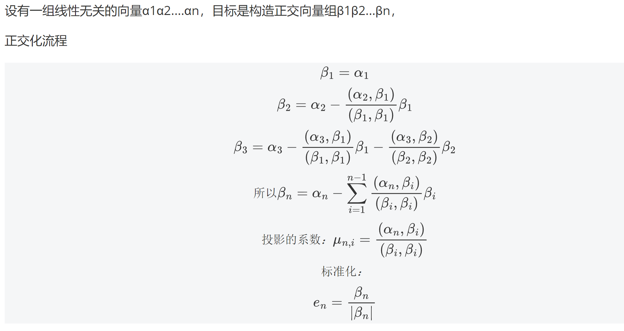 σ = 3/4,bi 线性无关向量,上面有个~的是正交化后的正交向量,μi, j 是 bi 在 bj(正交化) 上的投影系数